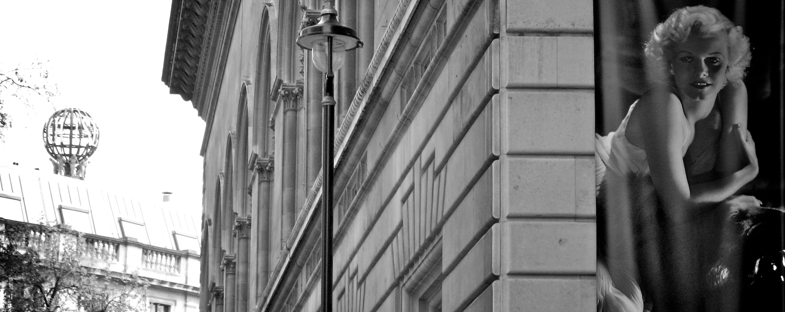 The exhibition continues until 26 May 2008 so if you happen to be in town, make sure you take a look. Below is a snap I took on exiting: Jean Harlow looking over London.